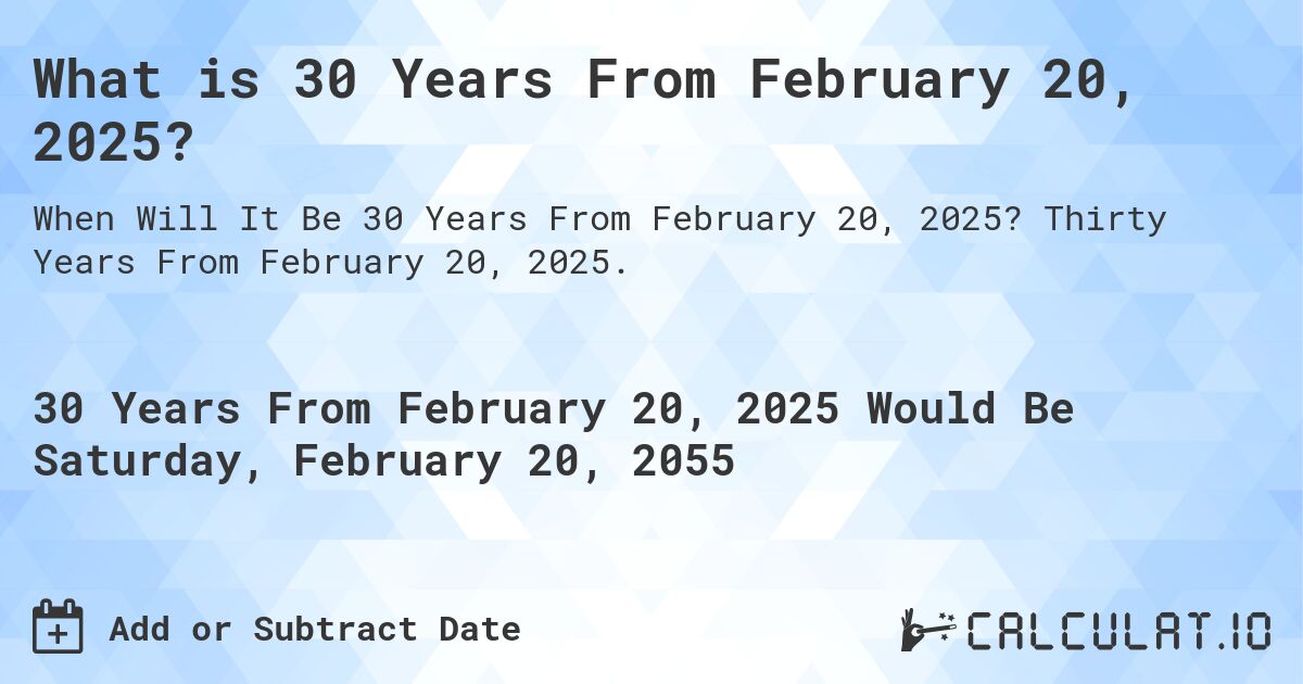 When Will It Be 30 Years From February 20, 2025?