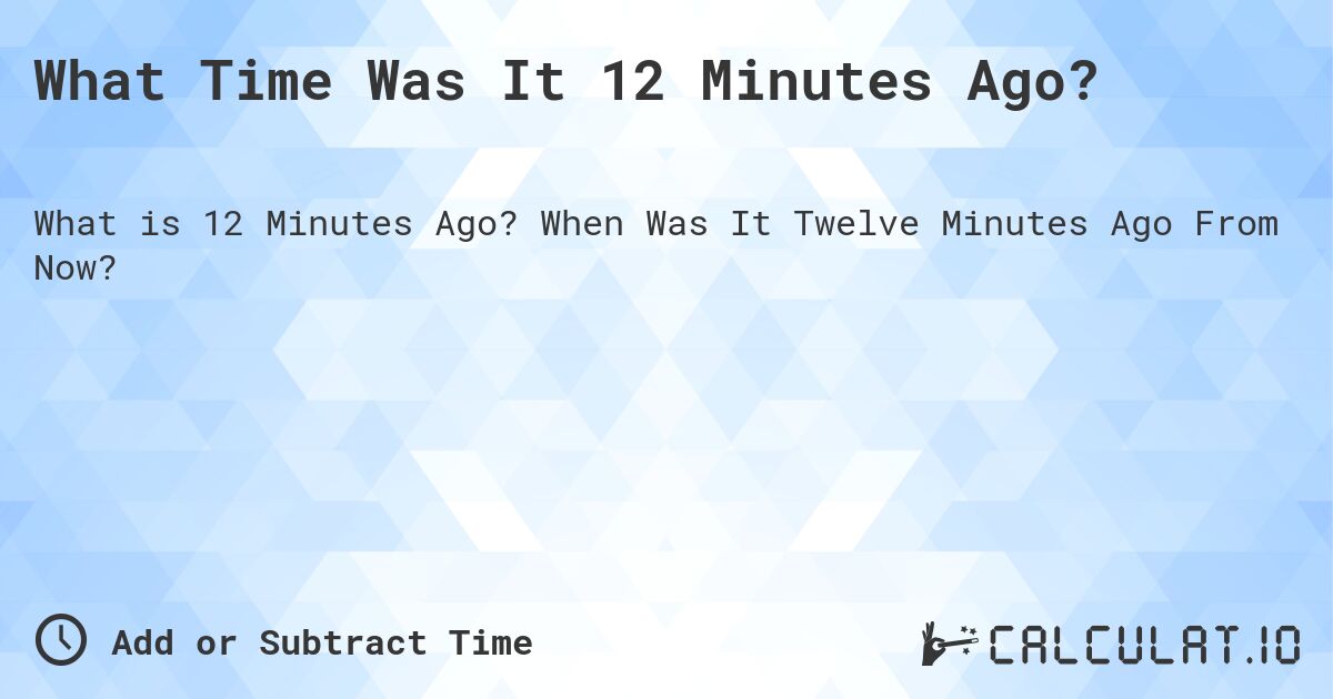 To use the Time Online Calculator, simply enter the number of days, hours, and minutes you want to add or subtract from the current time. For example, you might want to know What Time Was It 12 Minutes Ago?, so you would enter '0' days, '0' hours, and '12' minutes into the appropriate fields.