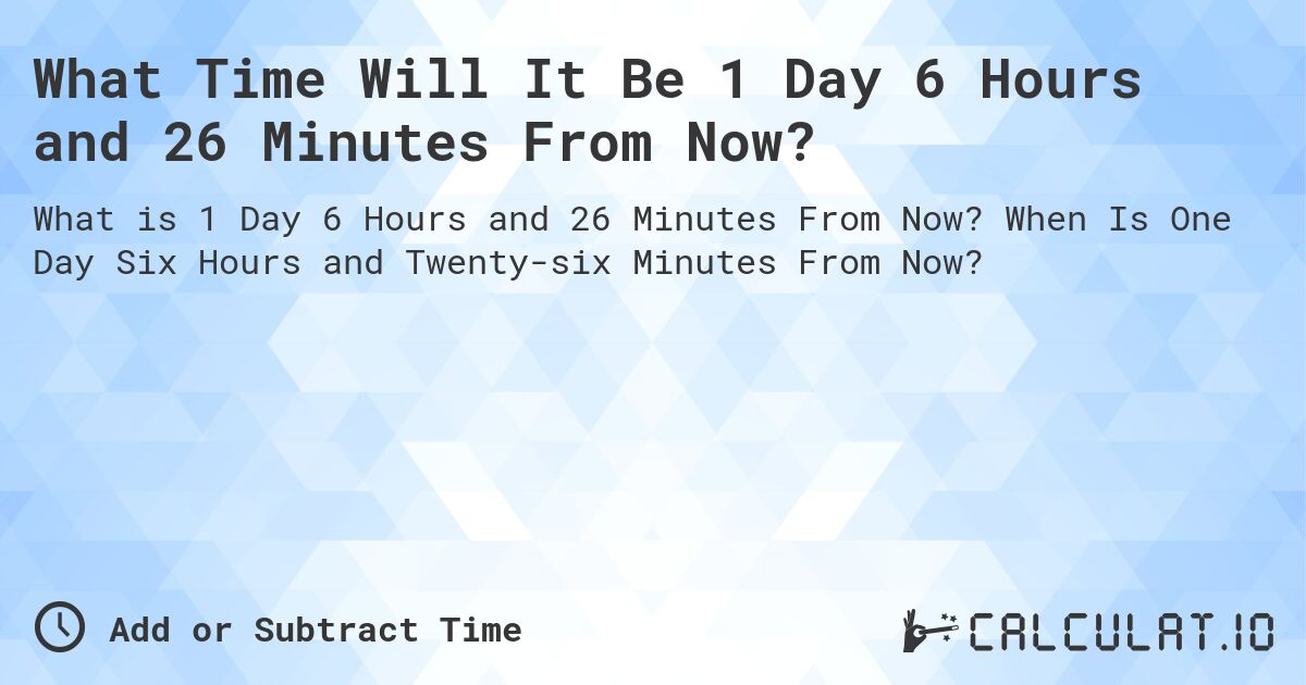 What is 1 Day 6 Hours and 26 Minutes From Now?