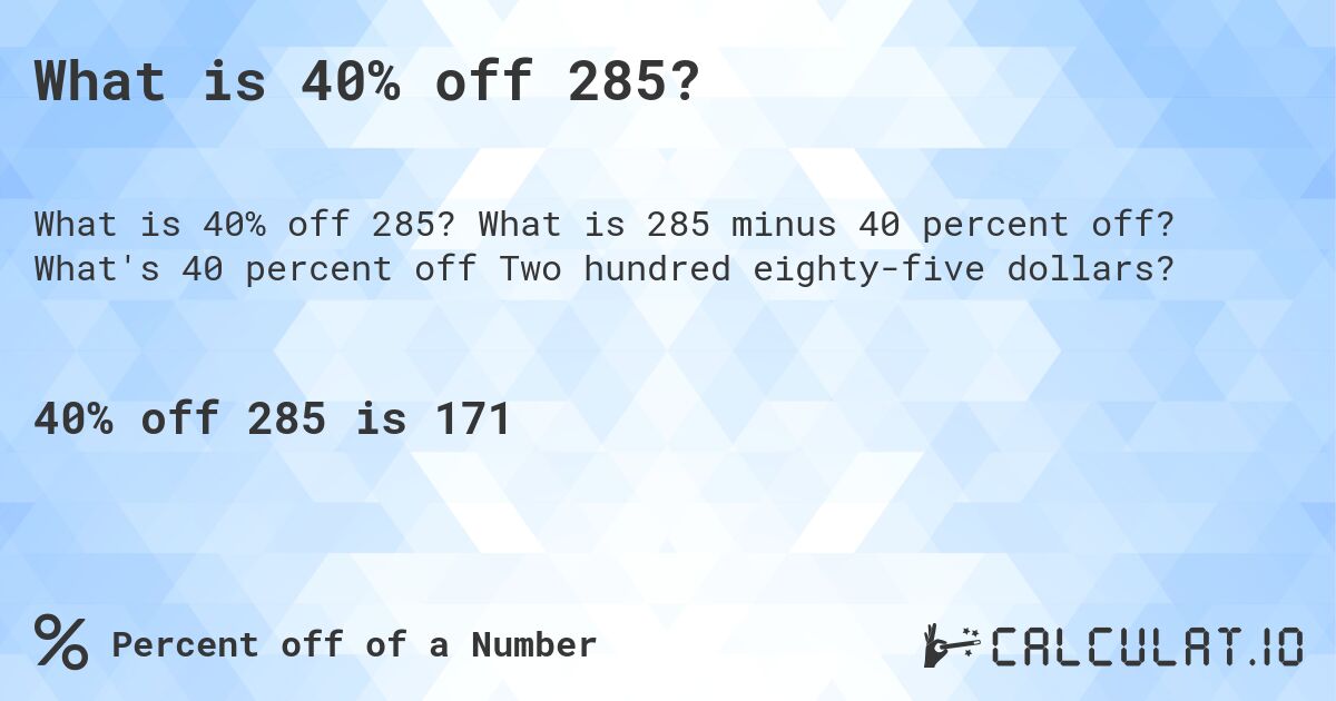 What is 40% off 285?