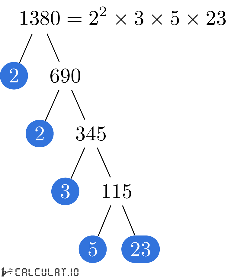 Now we have all the Prime Factors for number 1380. It is: 2, 2, 3, 5, 23