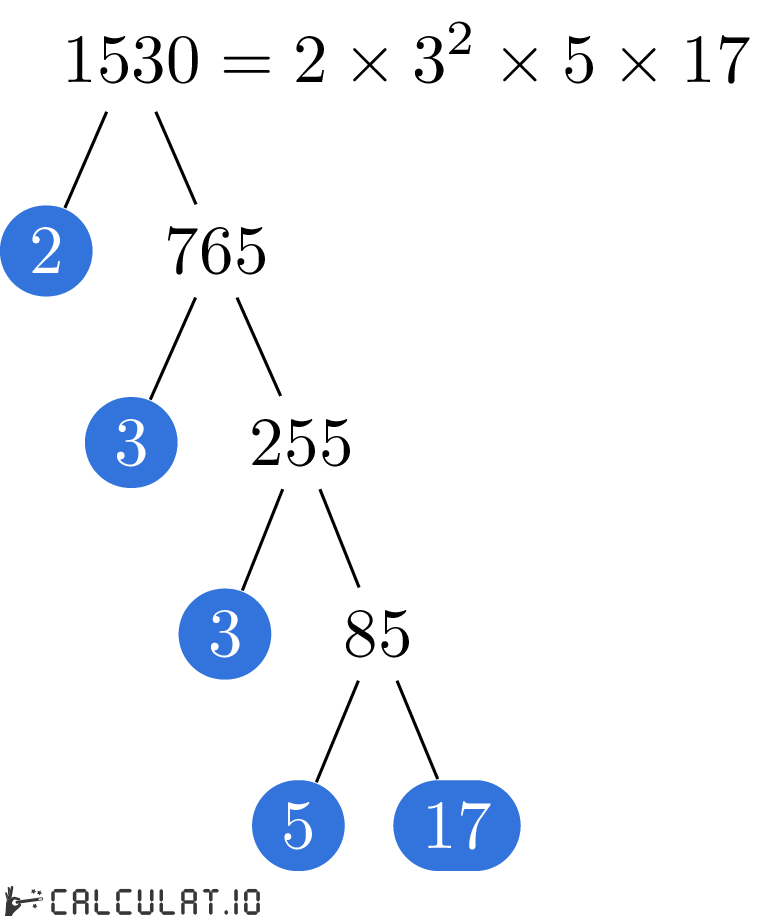Now we have all the Prime Factors for number 1530. It is: 2, 3, 3, 5, 17
