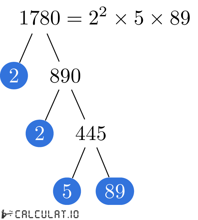 Now we have all the Prime Factors for number 1780. It is: 2, 2, 5, 89