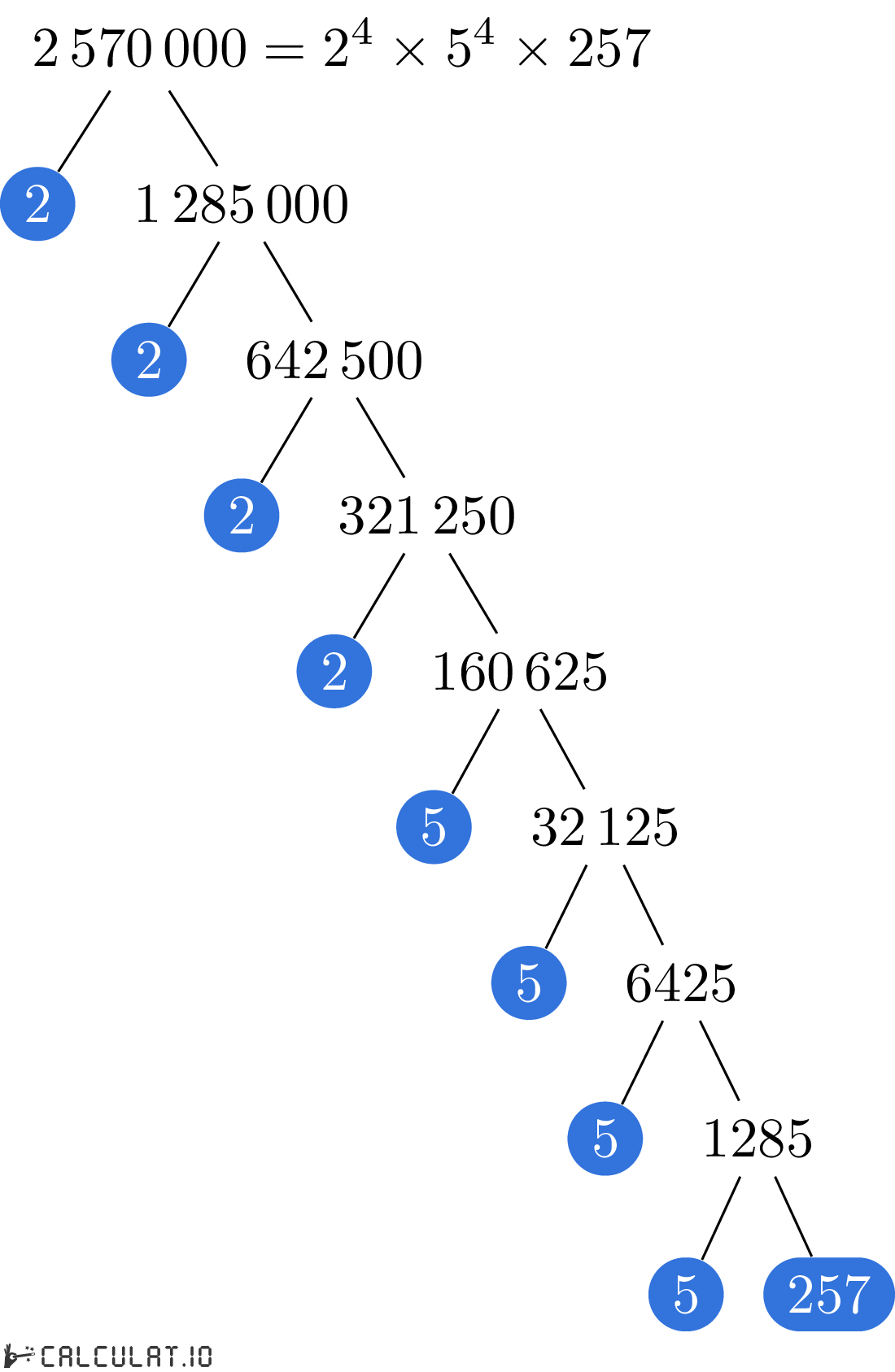 Explanation of number 2570000 Prime Factorization