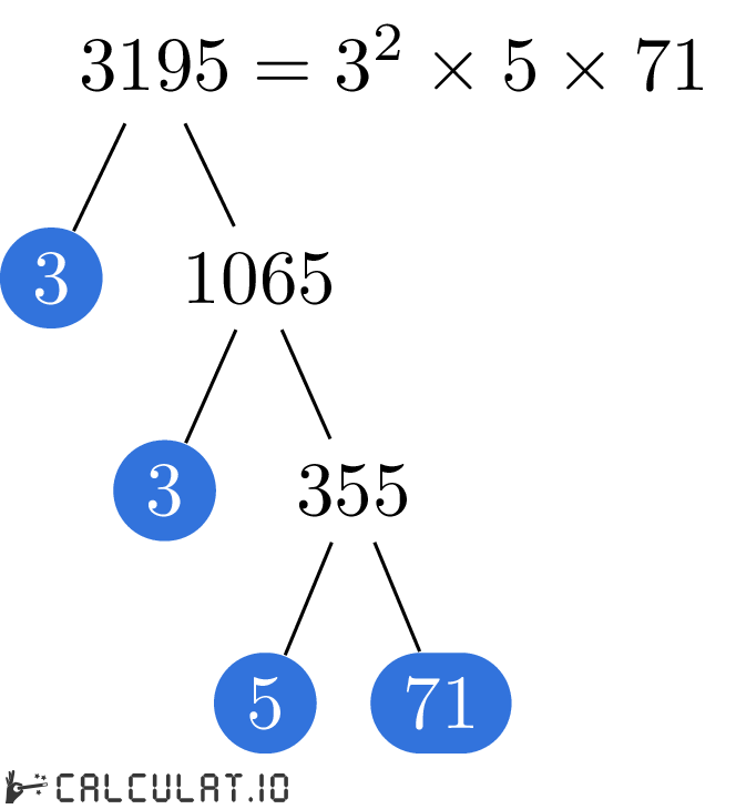 Now we have all the Prime Factors for number 3195. It is: 3, 3, 5, 71