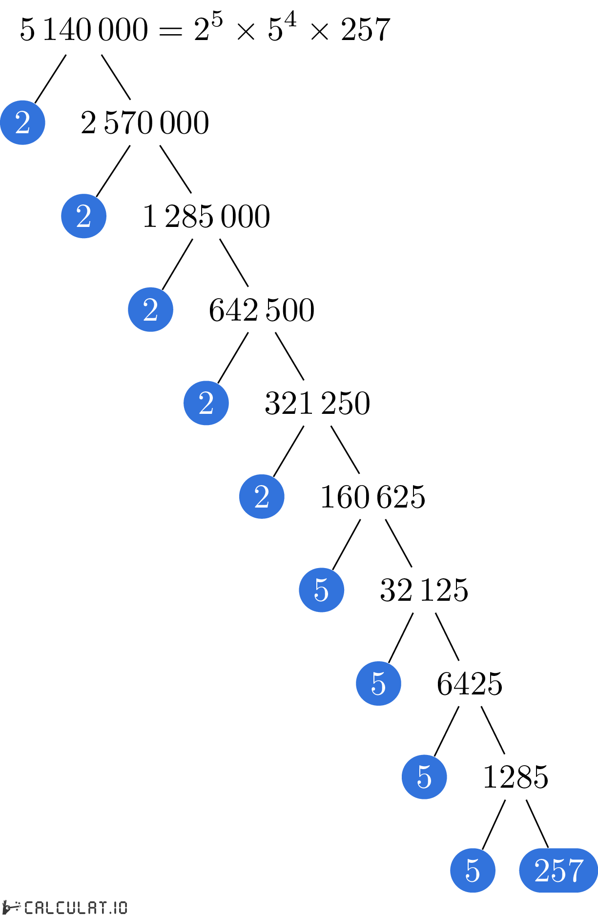 Explanation of number 5140000 Prime Factorization