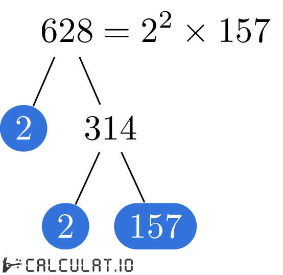 Now we have all the Prime Factors for number 628. It is: 2, 2, 157