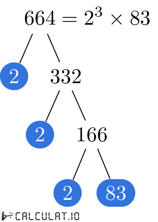 Now we have all the Prime Factors for number 664. It is: 2, 2, 2, 83