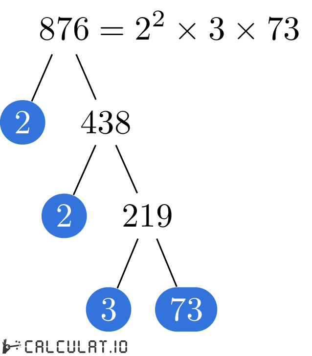 Now we have all the Prime Factors for number 876. It is: 2, 2, 3, 73