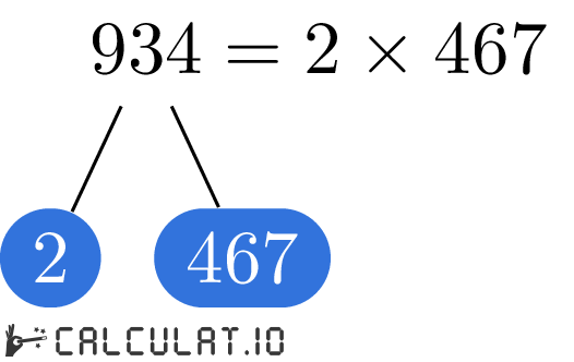 Now we have all the Prime Factors for number 934. It is: 2, 467