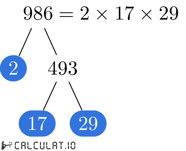Now we have all the Prime Factors for number 986. It is: 2, 17, 29