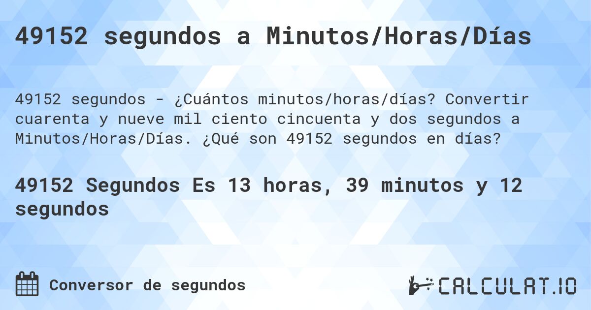 49152 segundos - ¿Cuántos minutos/horas/días?