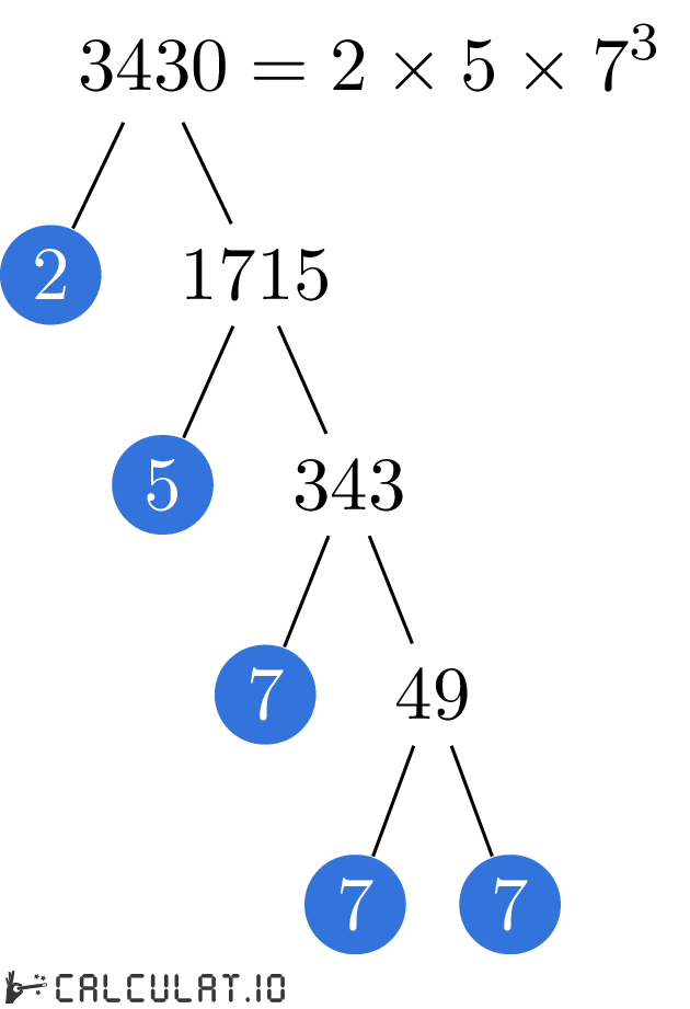 Factores primos de 3430: 2, 5, 7, 7, 7