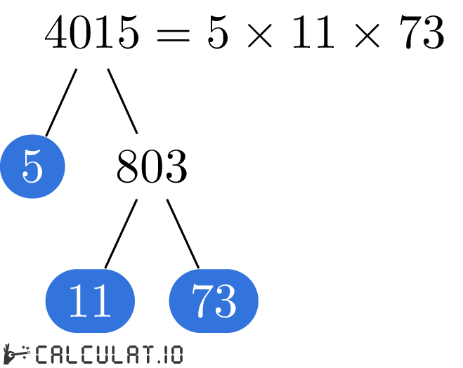 Esta calculadora realizará la factorización prima de cualquier número dado y mostrará todos sus factores primos. Por ejemplo, ¿puede ayudarte a determinar ¿Cuál es la factorización prima de 4015? (La respuesta es: 5, 11, 73). Elija el número para la factorización (por ejemplo, '4015'). Después presione el botón 'Calcular'.