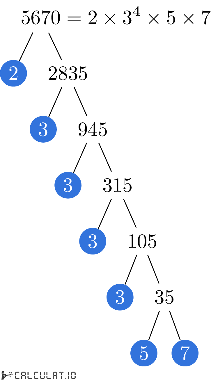 Factores primos de 5670: 2, 3, 3, 3, 3, 5, 7