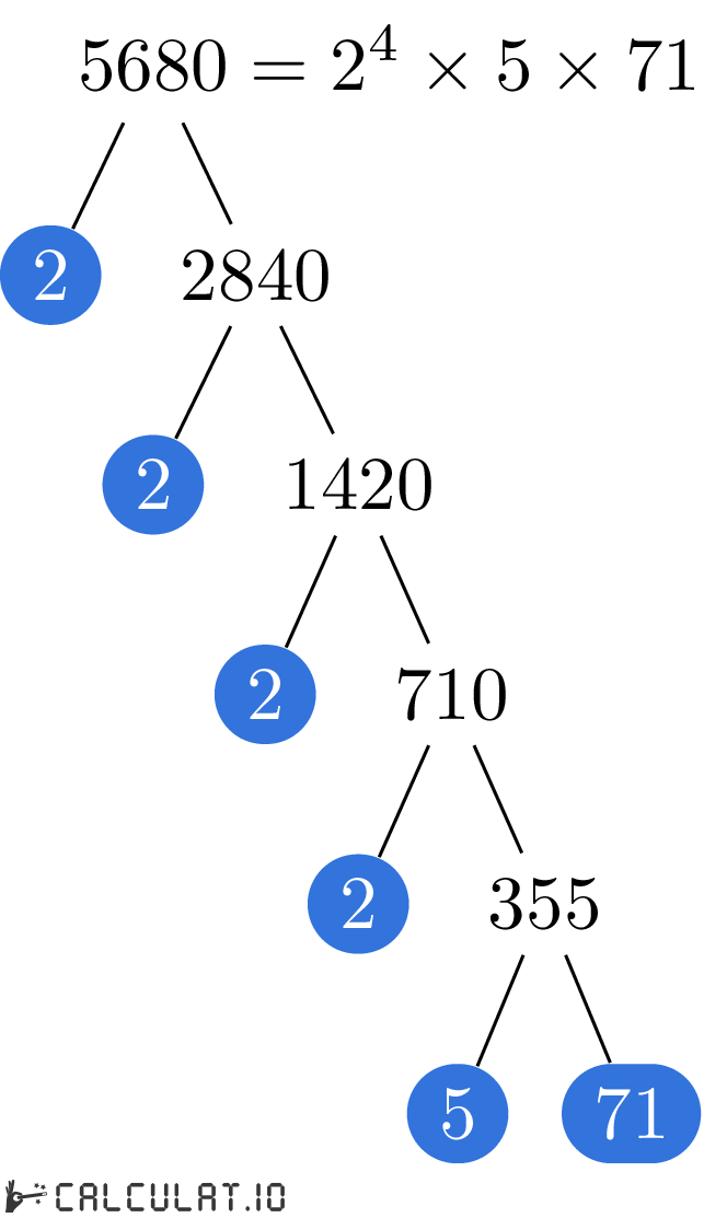 Factores primos de 5680: 2, 2, 2, 2, 5, 71