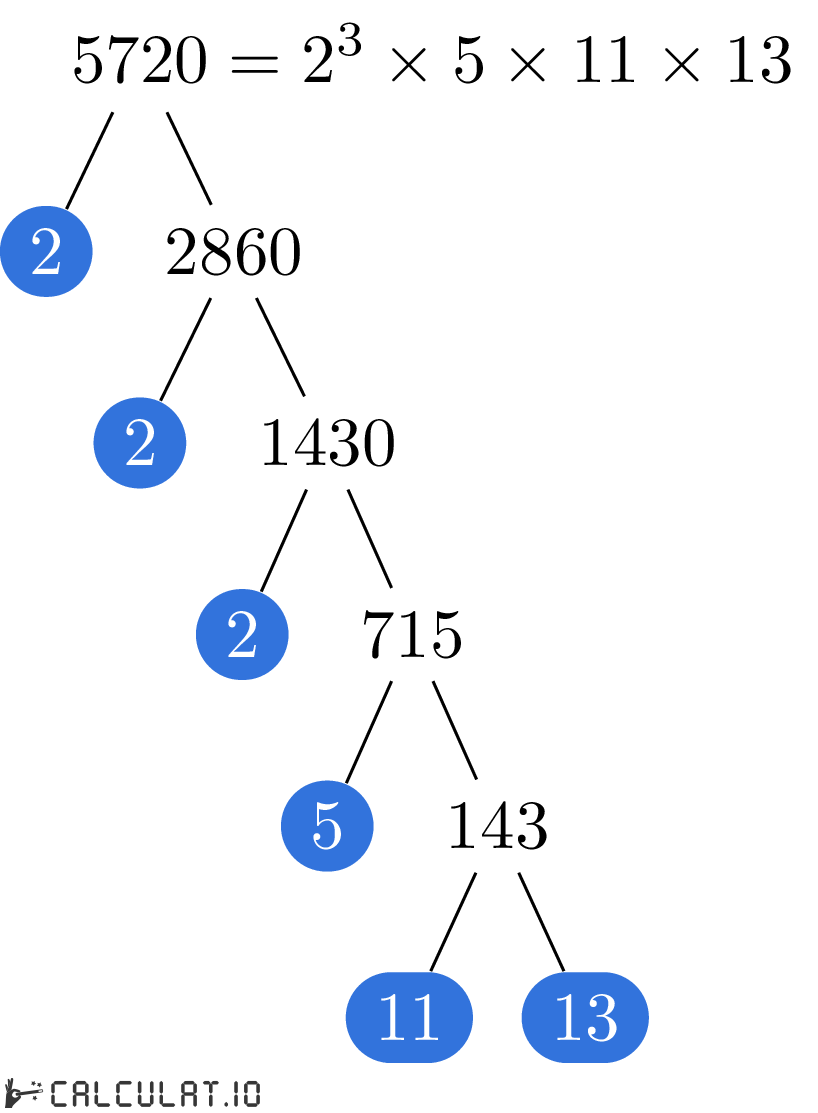 Factores primos de 5720: 2, 2, 2, 5, 11, 13