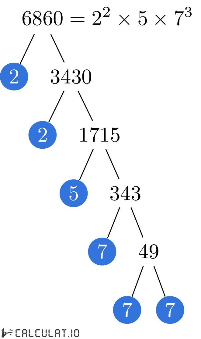 Factores primos de 6860: 2, 2, 5, 7, 7, 7