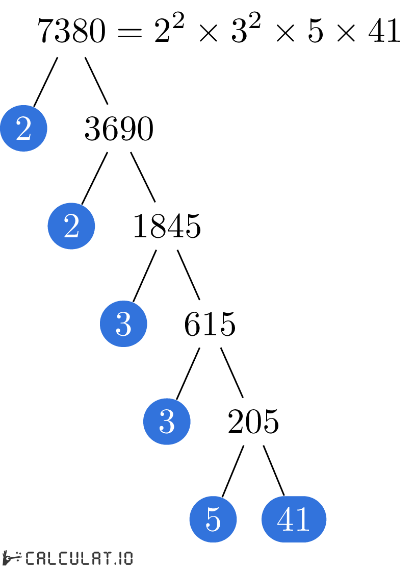 Factores primos de 7380: 2, 2, 3, 3, 5, 41