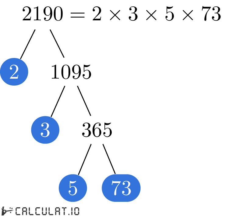 Esta calculadora realizará a fatoração prima de qualquer número dado e mostrará todos os seus fatores primos. Por exemplo, pode ajudá-lo a descobrir qual é a fatoração prima de 2190? (A resposta é: 2, 3, 5, 73). Escolha o número para a fatoração (por exemplo, '2190'). Depois pressione o botão 'Calcular'.