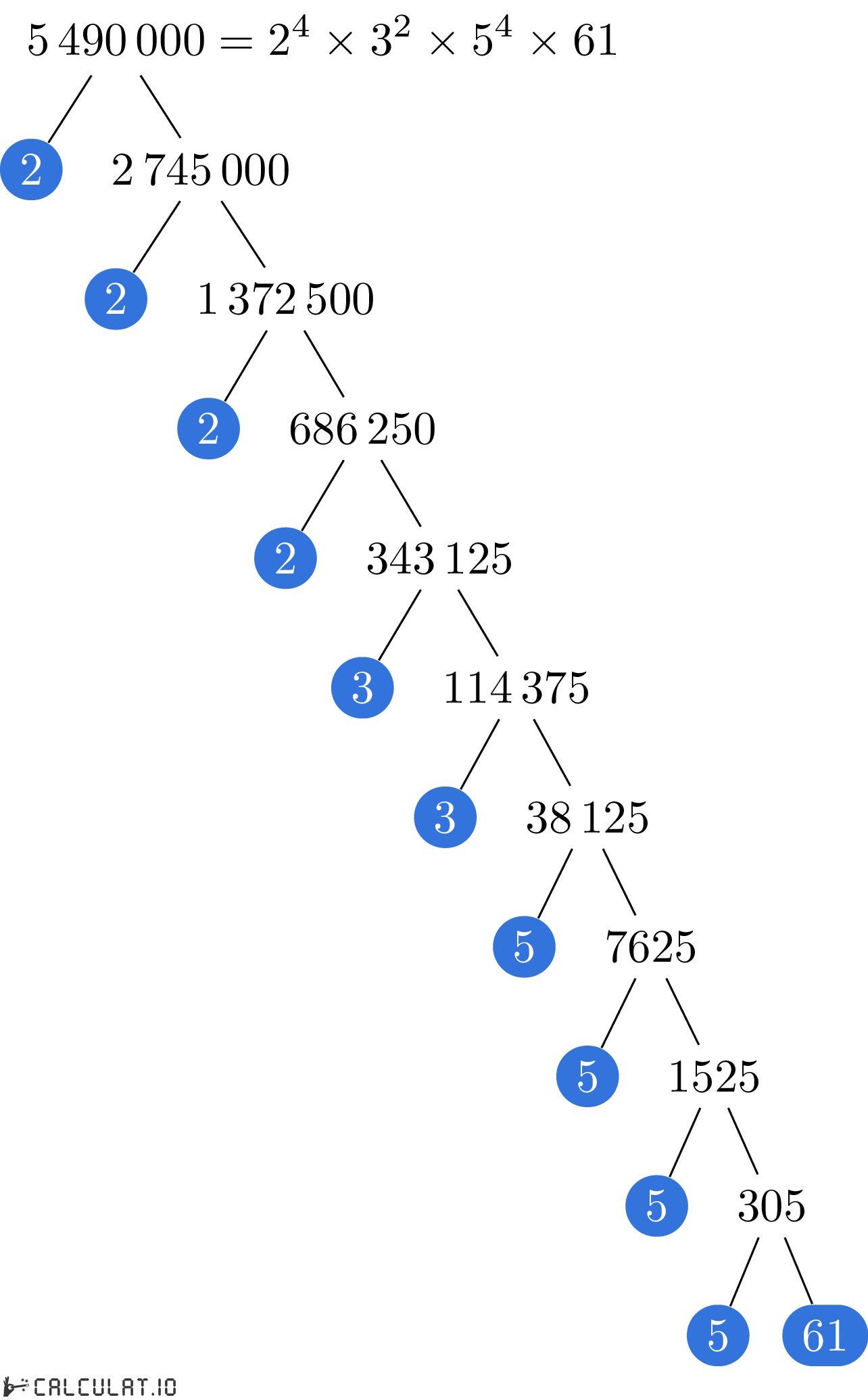 Fatores Primários de 5490000: 2, 2, 2, 2, 3, 3, 5, 5, 5, 5, 61