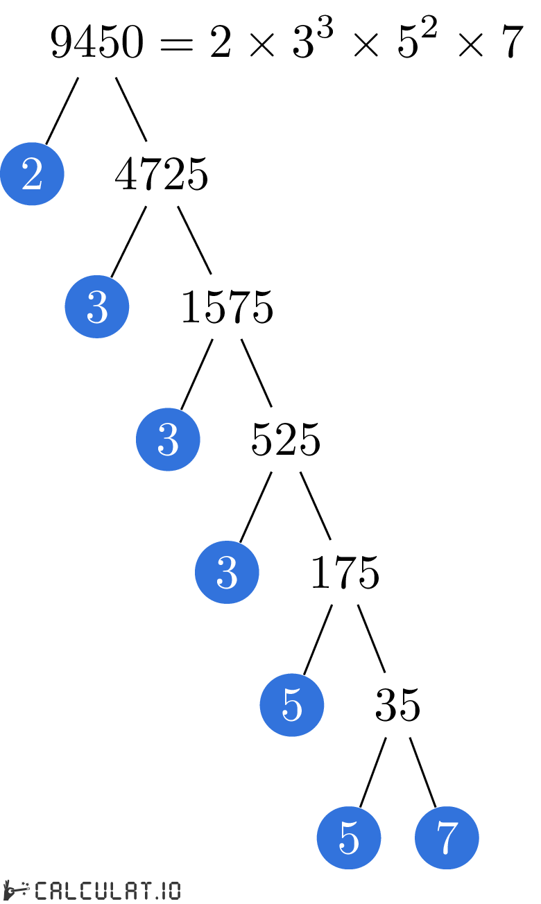 Fatores Primários de 9450: 2, 3, 3, 3, 5, 5, 7