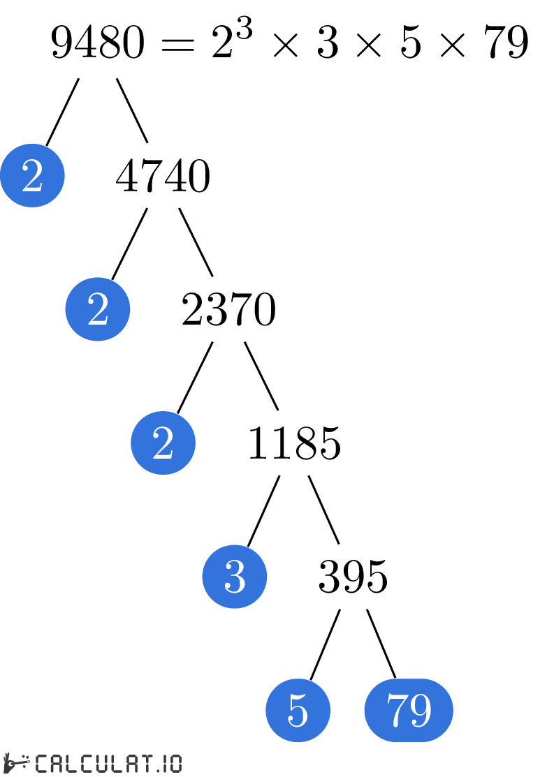 Fatores Primários de 9480: 2, 2, 2, 3, 5, 79