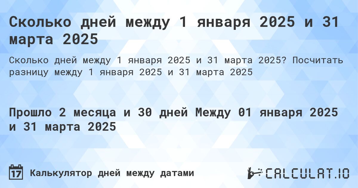 Сколько дней между 1 января 2025 и 31 марта 2025