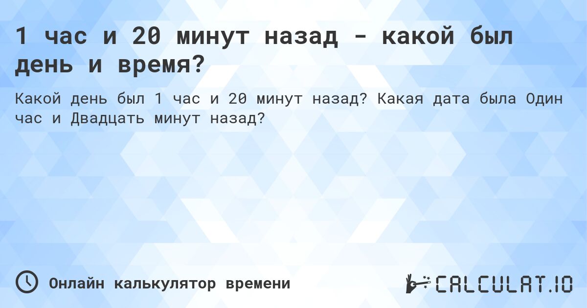 Чтобы использовать калькулятор времени, просто введите количество дней, часов и минут, которые вы хотите прибавить или вычесть из текущего времени. Например, если вы хотите узнать, 1 час и 20 минут назад - какой был день и время?, просто введите '0 дней', '1 час' и '20 минут' в соответствующие поля.