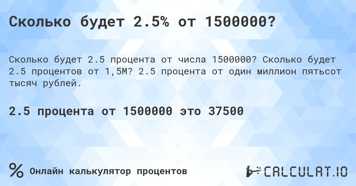 Для расчета 2.5% от 1500000 можно записать задачу как пропорцию.