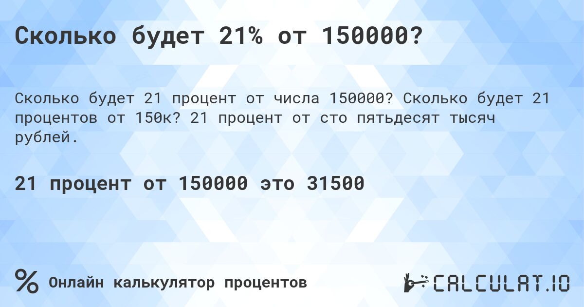 Сколько будет 21% от 150000?