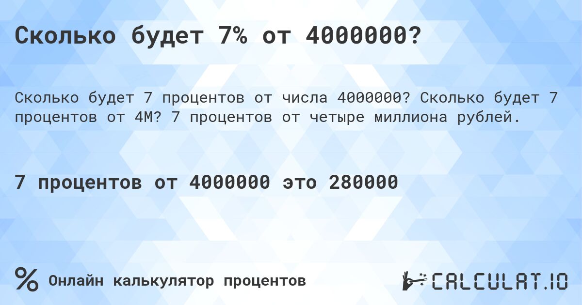 Для расчета 7% от 4000000 можно записать задачу как пропорцию.