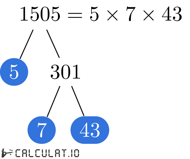 В итоге мы получили список всех простых множителей числа 1505. Это: 5, 7, 43
