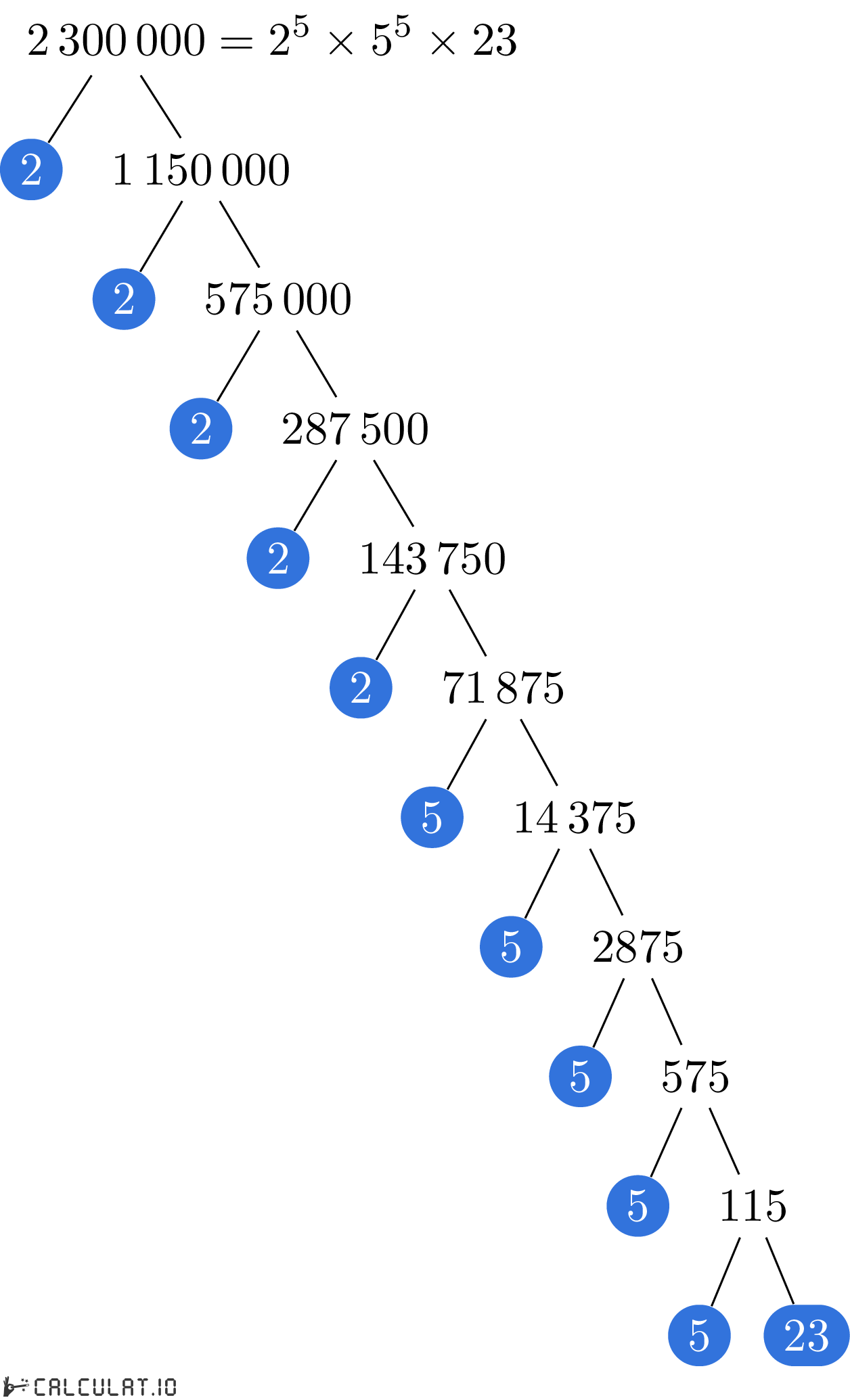 Дерево простых множителей числа 2300000