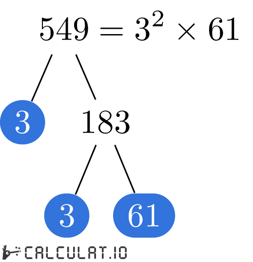 Для того, чтобы получить список простых множителей числа 549, необходимо итеративно делить число 549 на минимально возможное простое число пока в результате не получится 1 (единица).