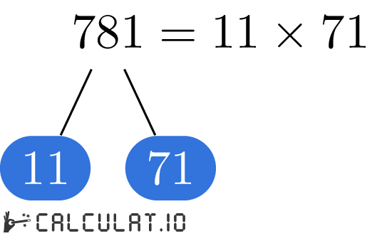 В итоге мы получили список всех простых множителей числа 781. Это: 11, 71