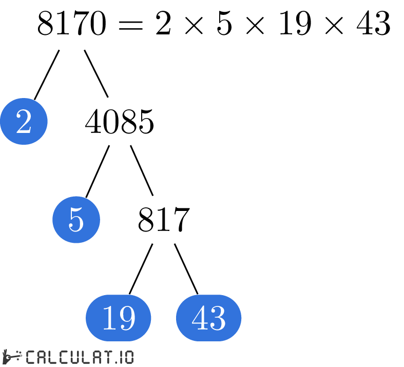 В итоге мы получили список всех простых множителей числа 8170. Это: 2, 5, 19, 43