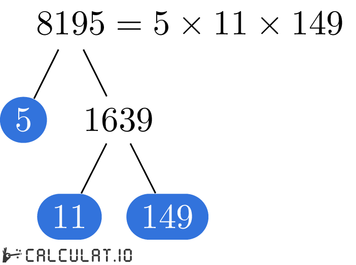 В итоге мы получили список всех простых множителей числа 8195. Это: 5, 11, 149
