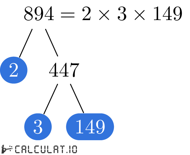В итоге мы получили список всех простых множителей числа 894. Это: 2, 3, 149