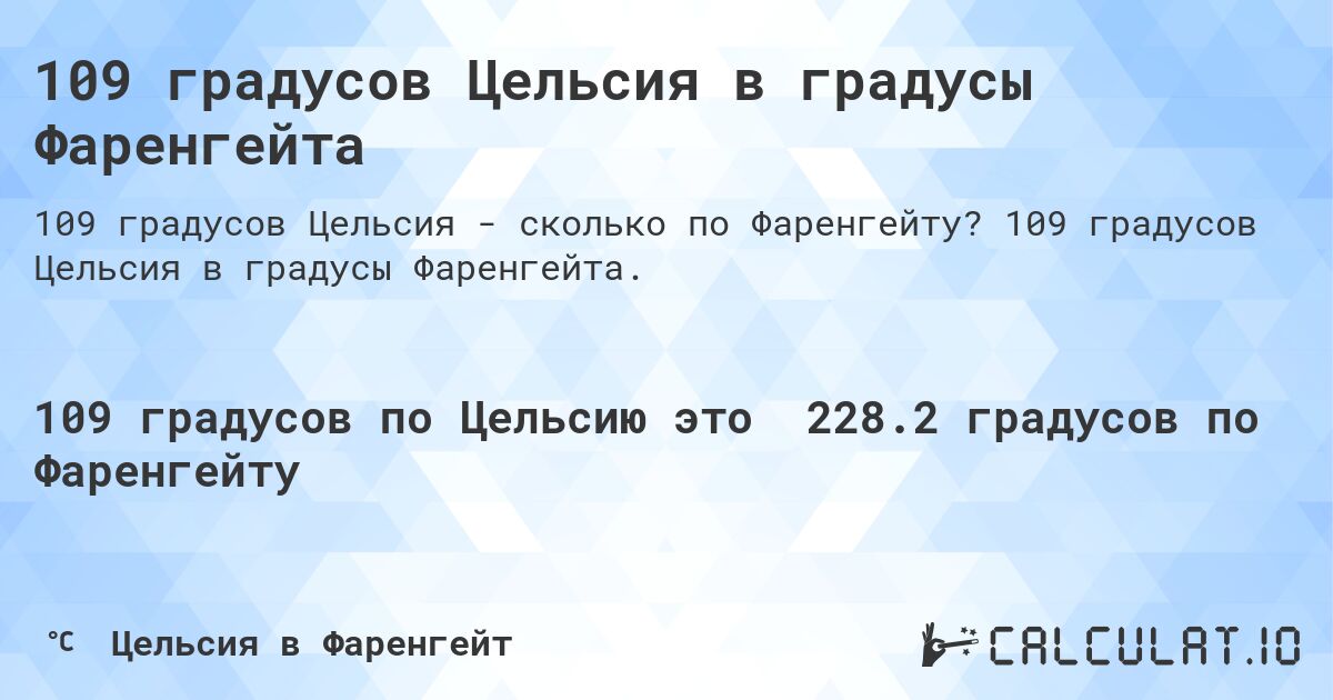 Ответ: 109 градусов по Цельсию это 228.2 градусов по Фаренгейту
