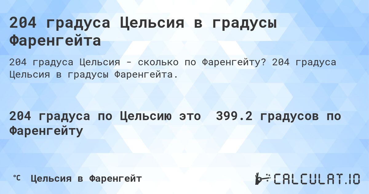 Ответ: 204 градуса по Цельсию это 399.2 градусов по Фаренгейту